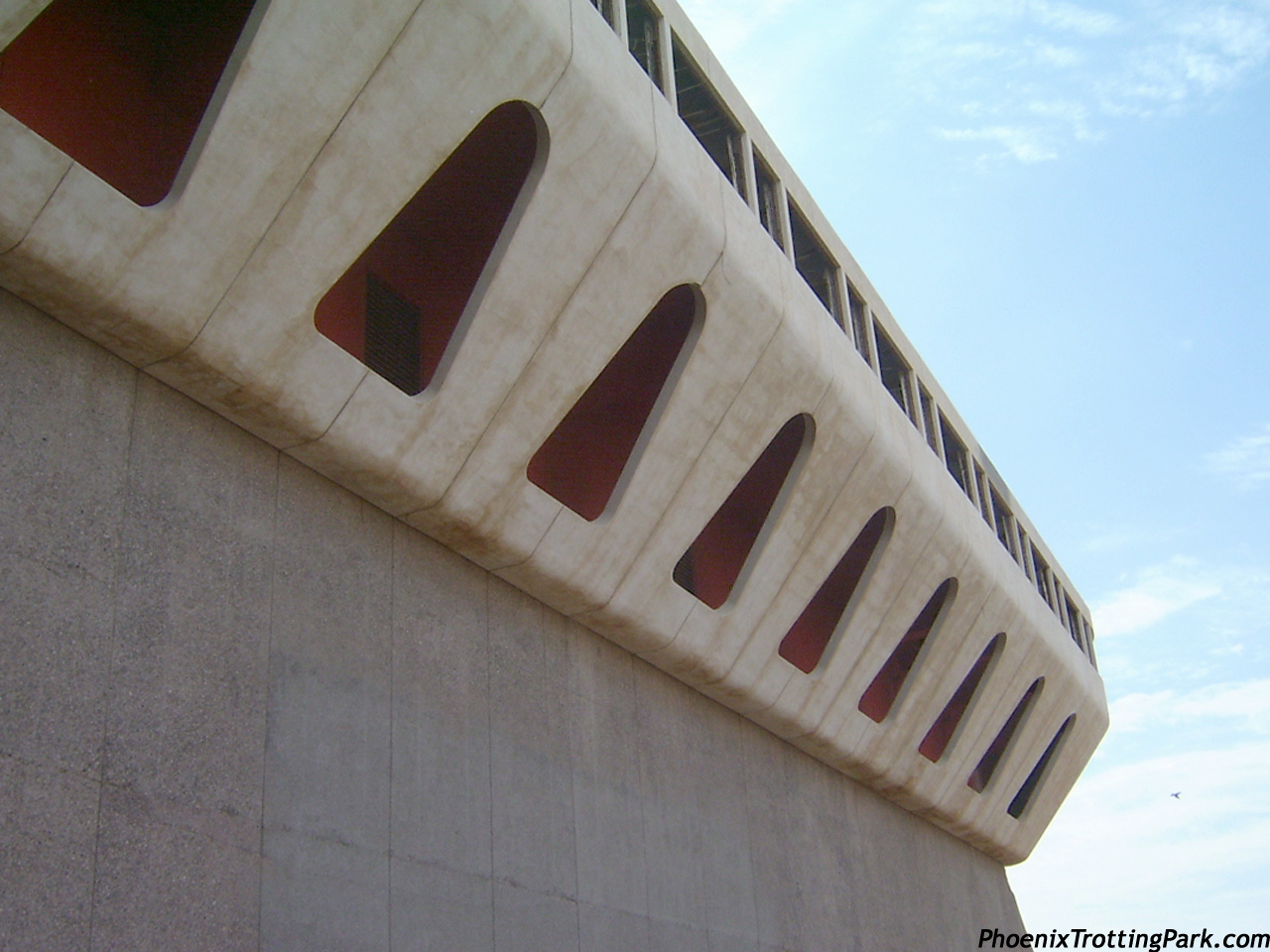 It is possible to see the hollow V-girders that once supported the roof and doubled as heating ducts during the winter months. Photo by: PhoenixTrottingPark.com.